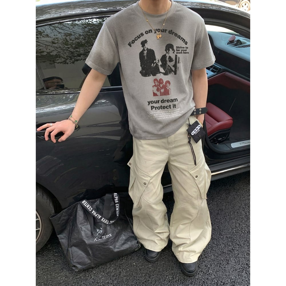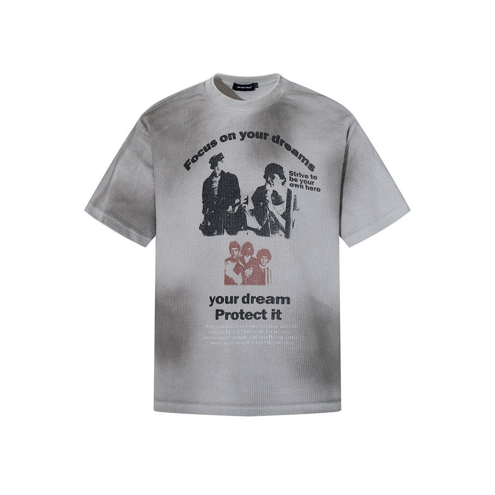 VINTAGE ストリート スプレー加工ワッフルTシャツ T2081