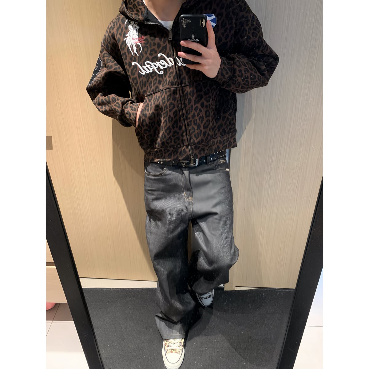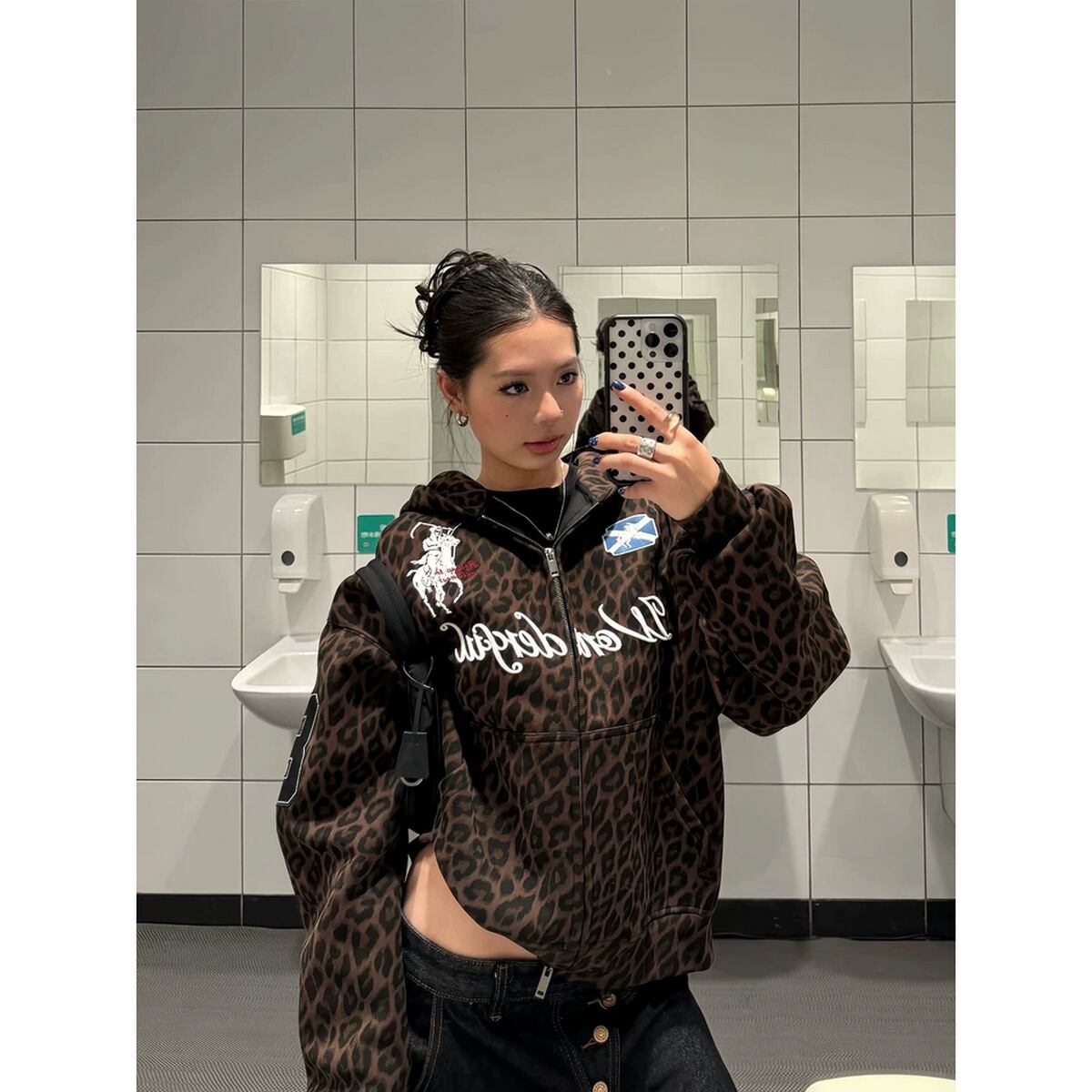 VINTAGE ストリート ヒョウ柄刺繍ジップパーカー T2083