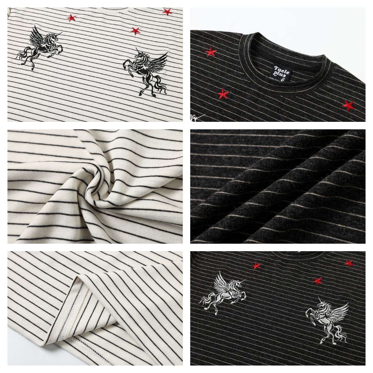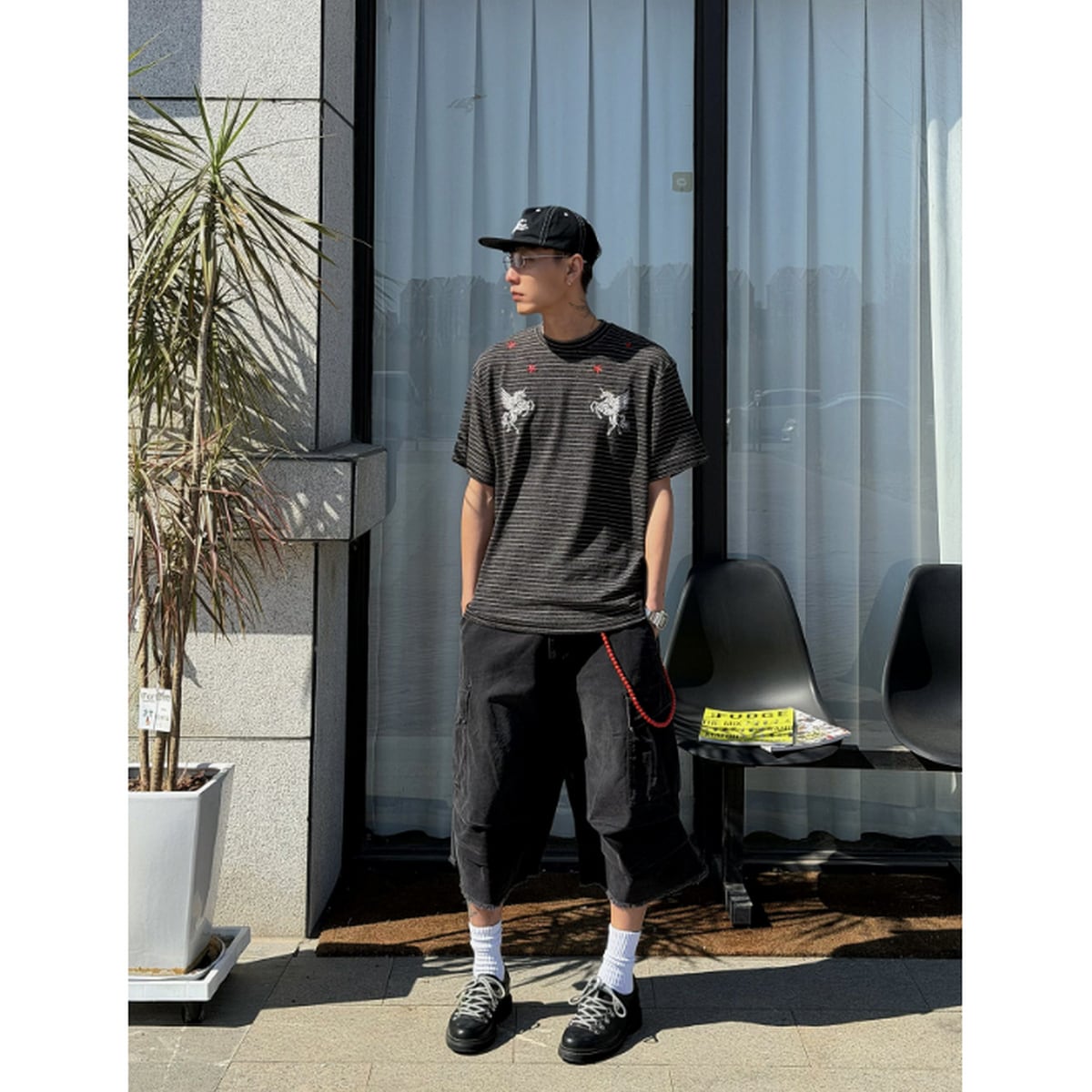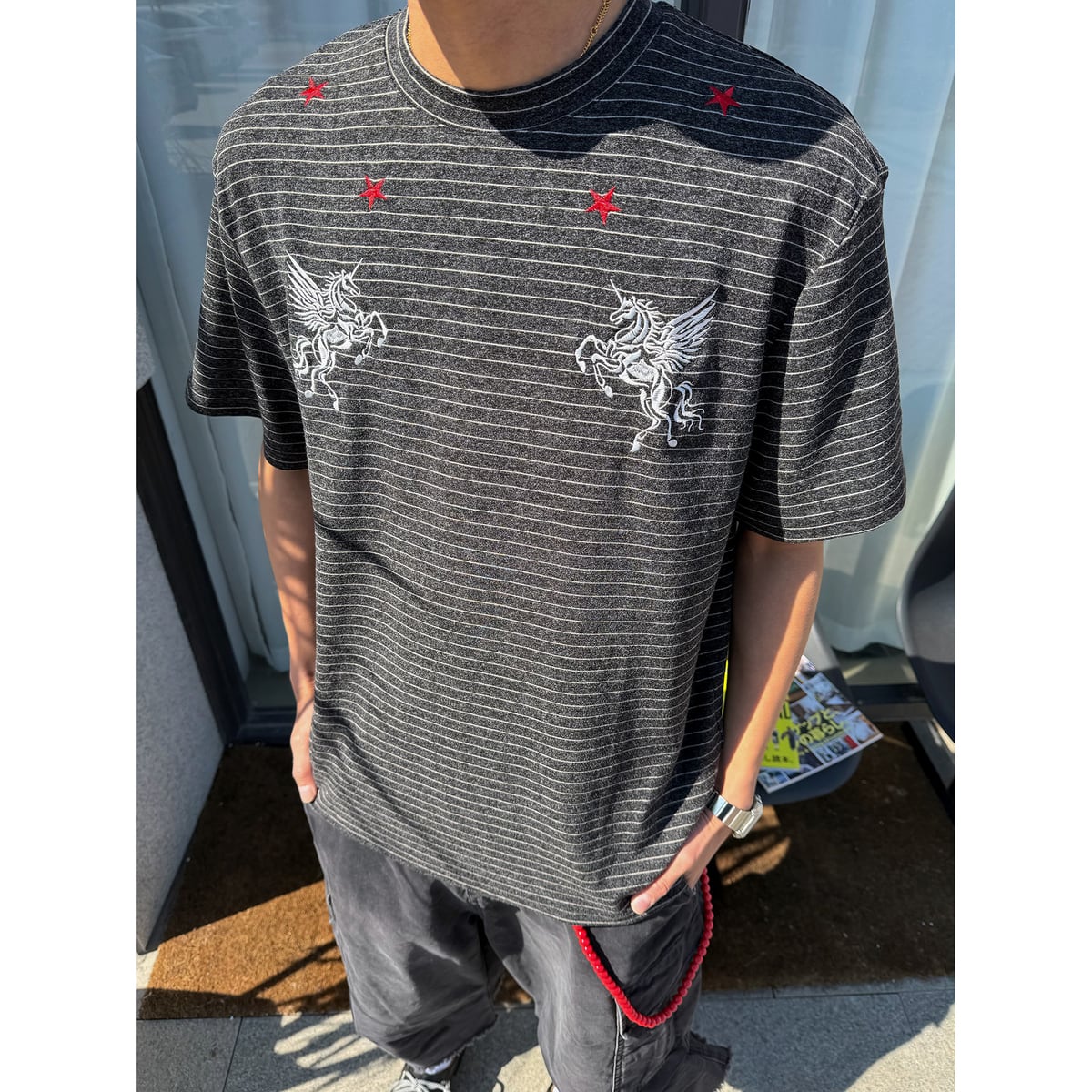 VINTAGE ストリート ストライプ柄の刺繍Tシャツ T2085