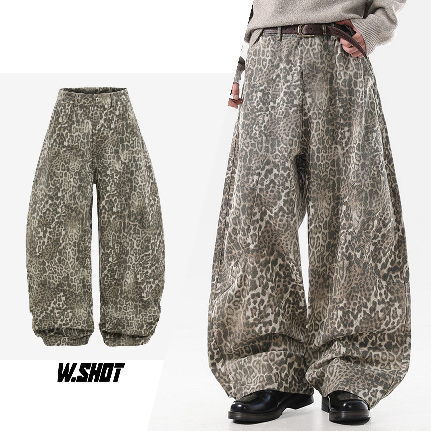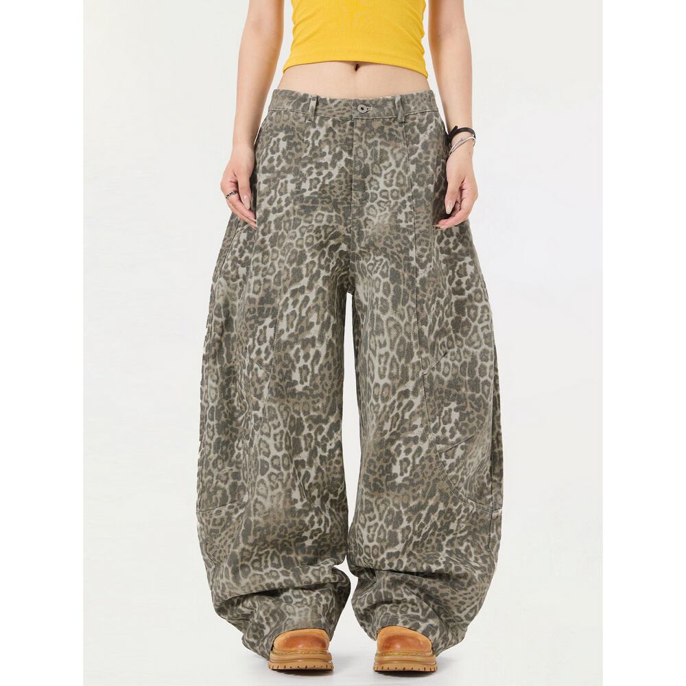 ストリート ヒョウ柄カーゴパンツ P390