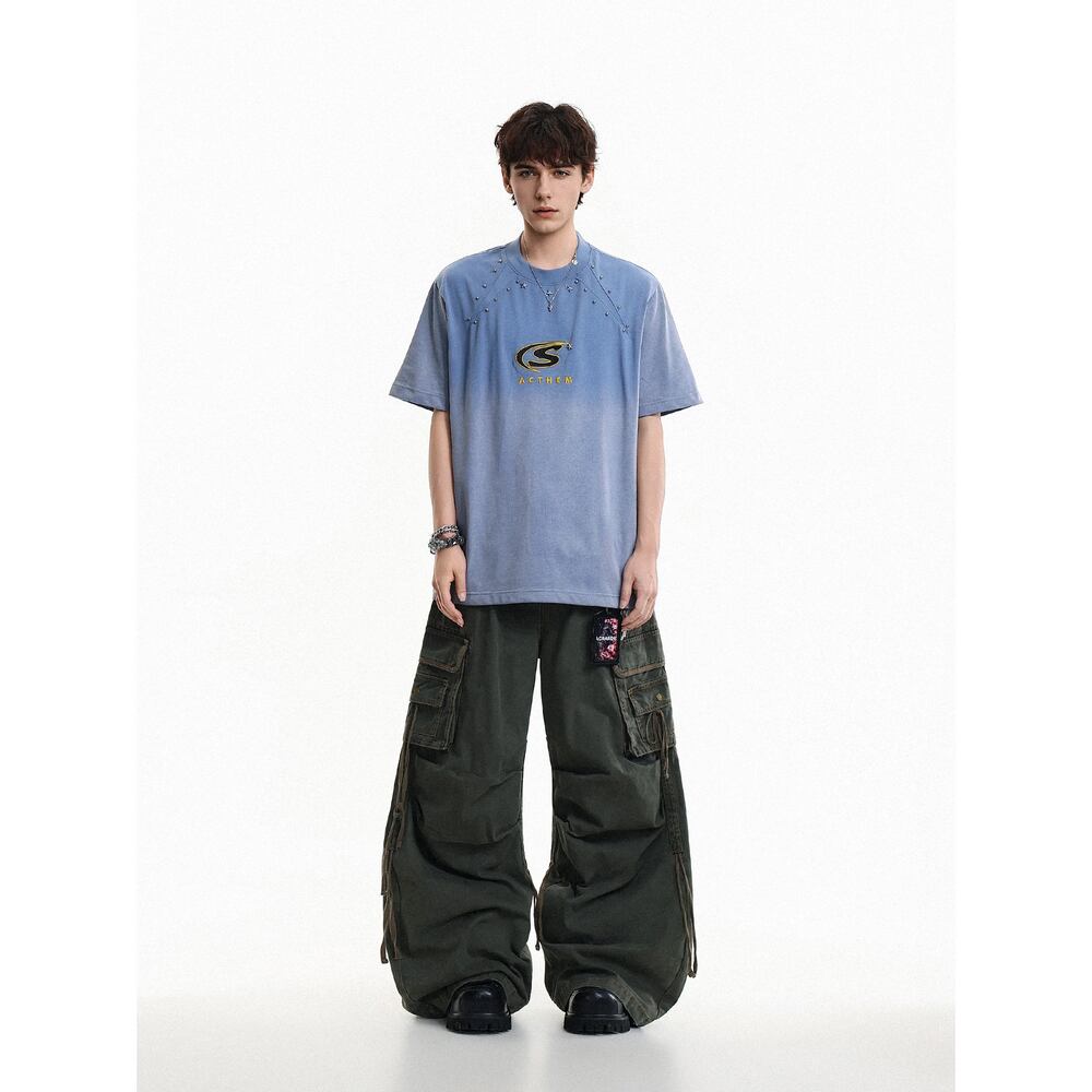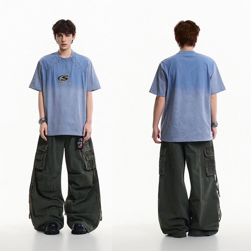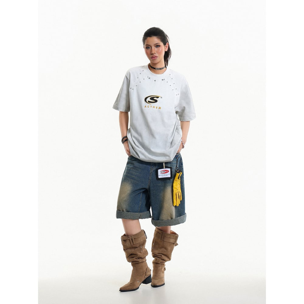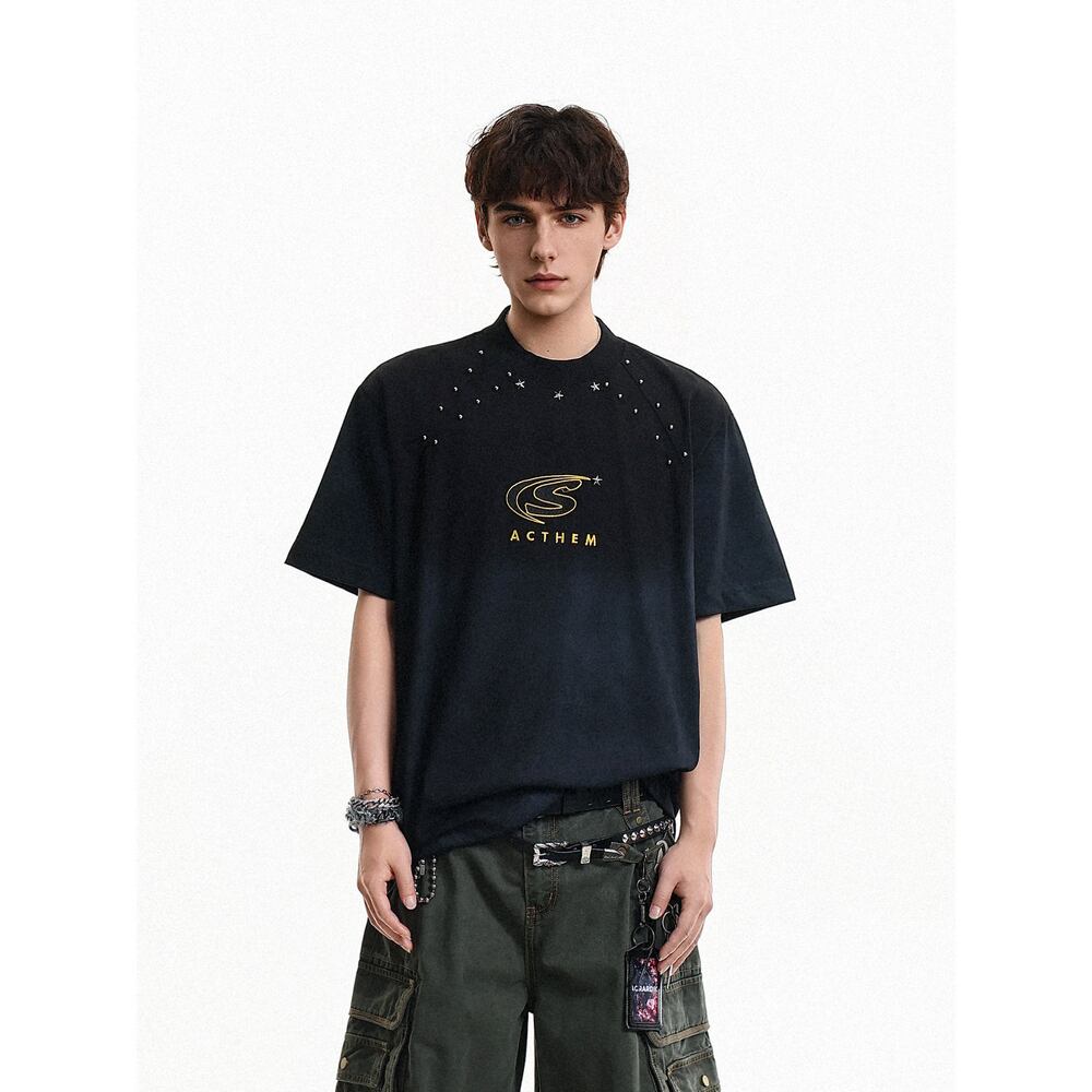 VINTAGE ストリート リベット刺繍Tシャツ T2096