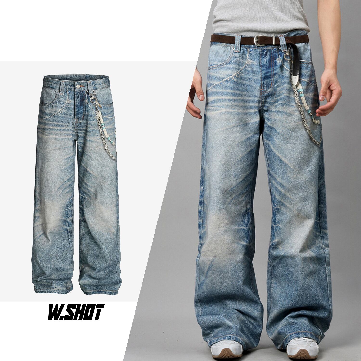 ストリート 3Dプリントデニムパンツ P399