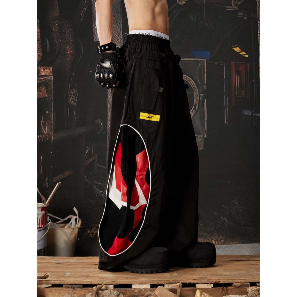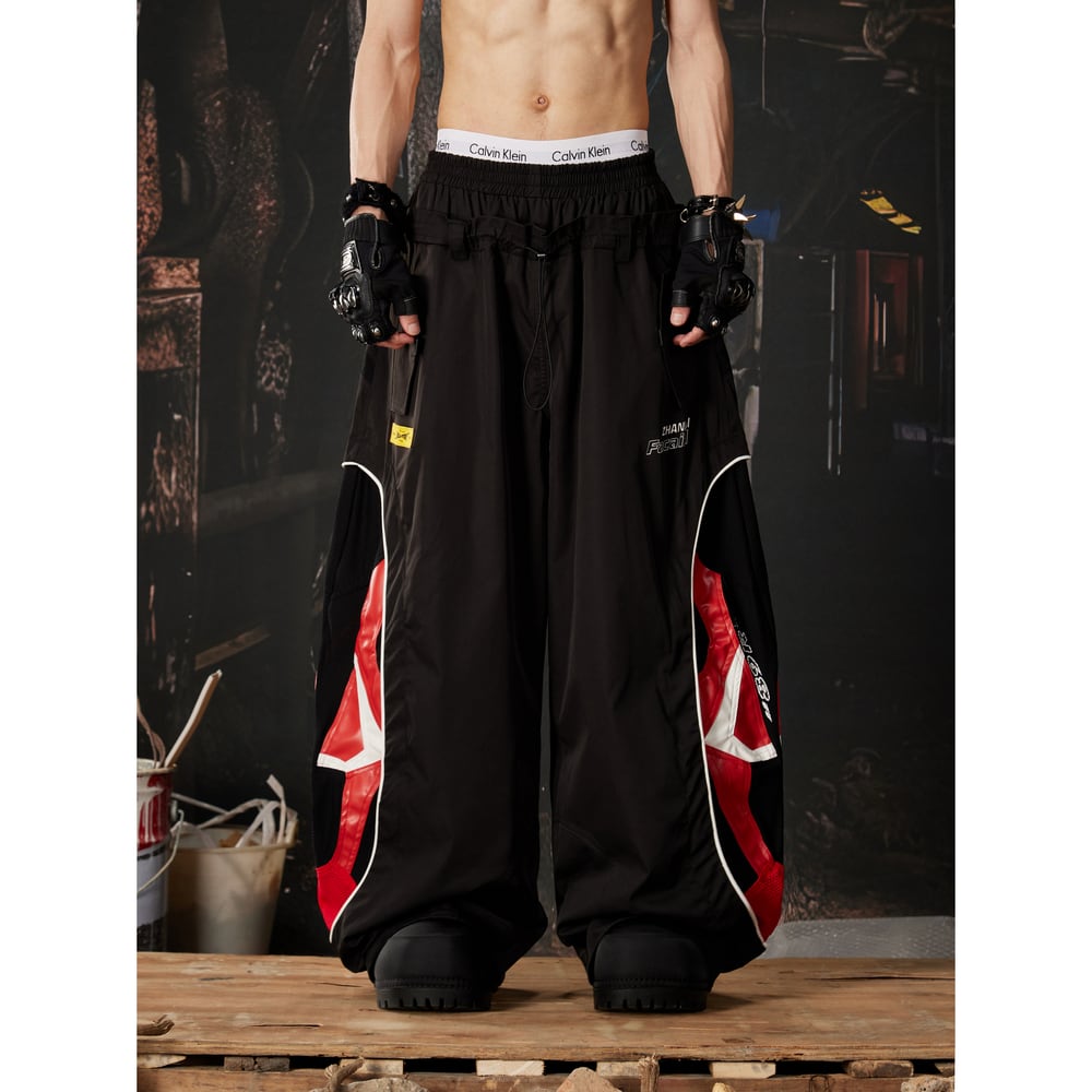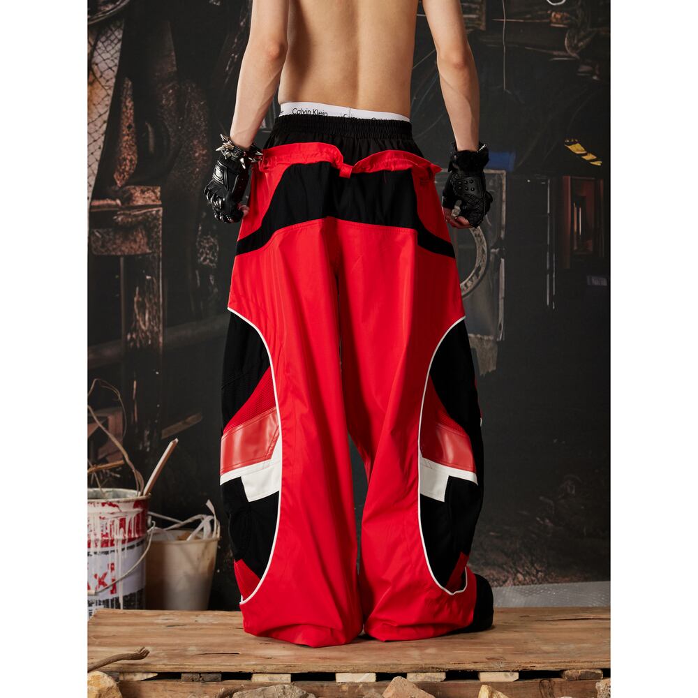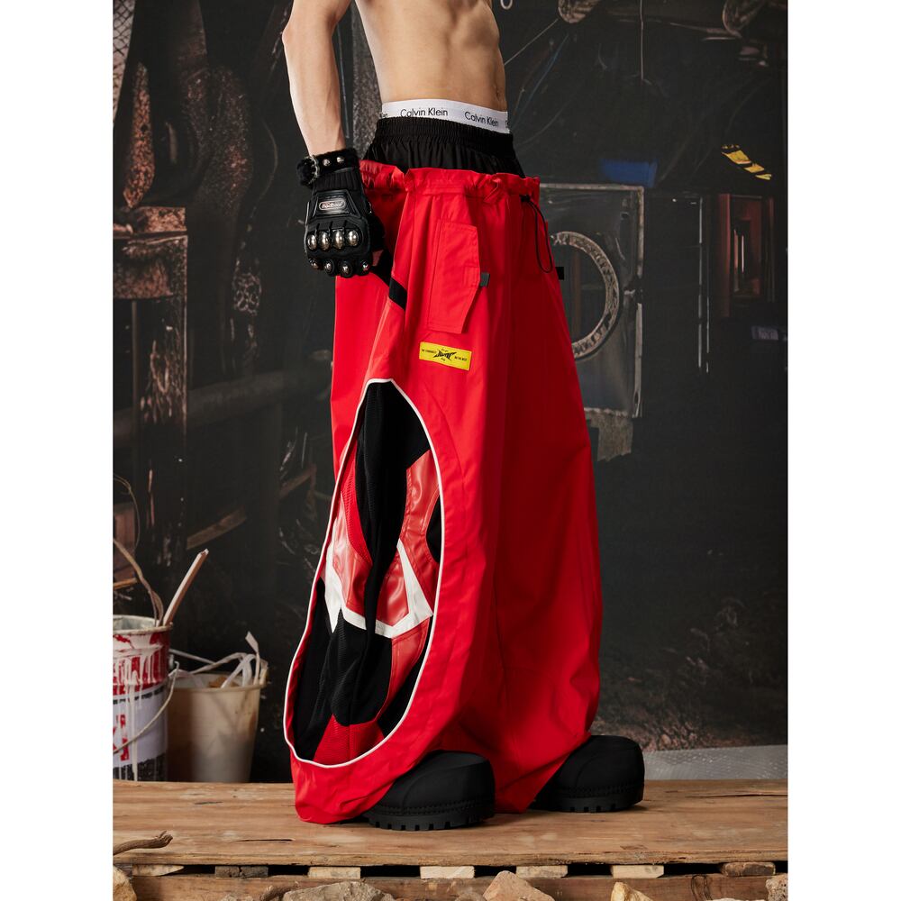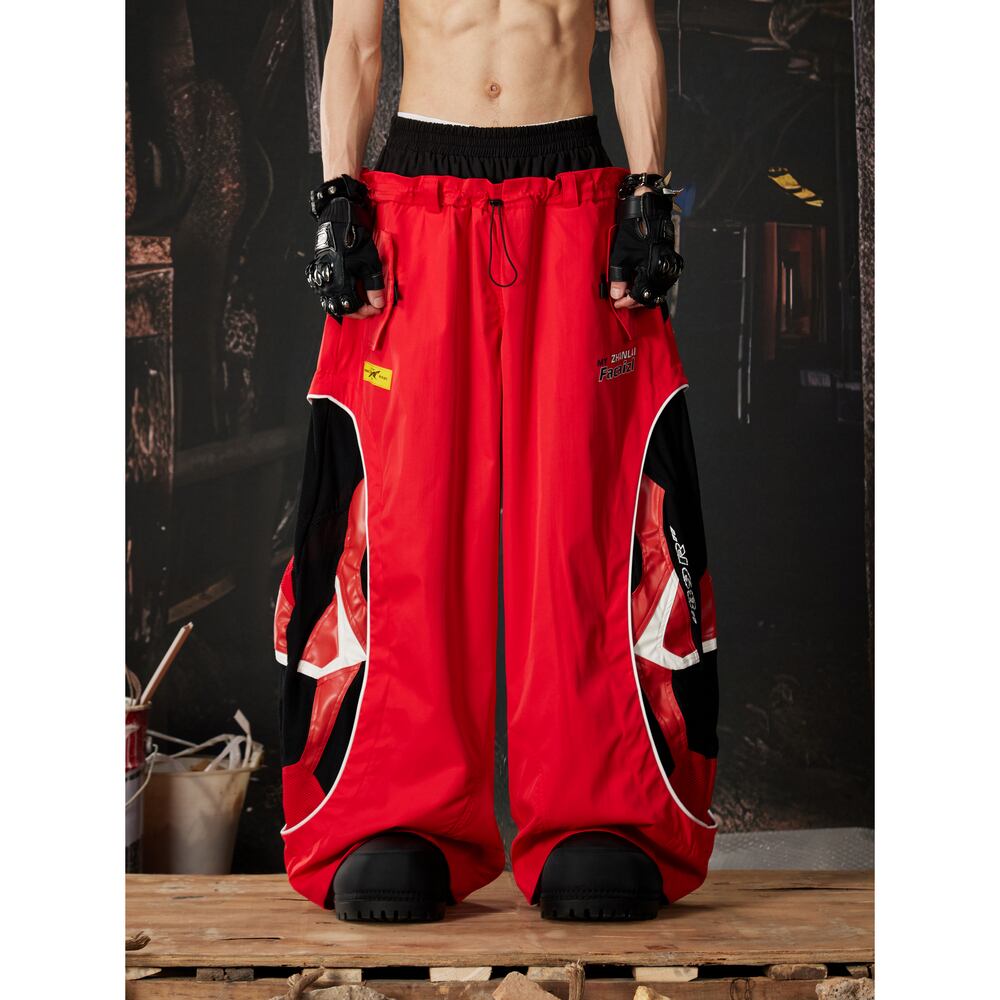 ストリート ダブルウエスト 切替ワイドトラックパンツ P410