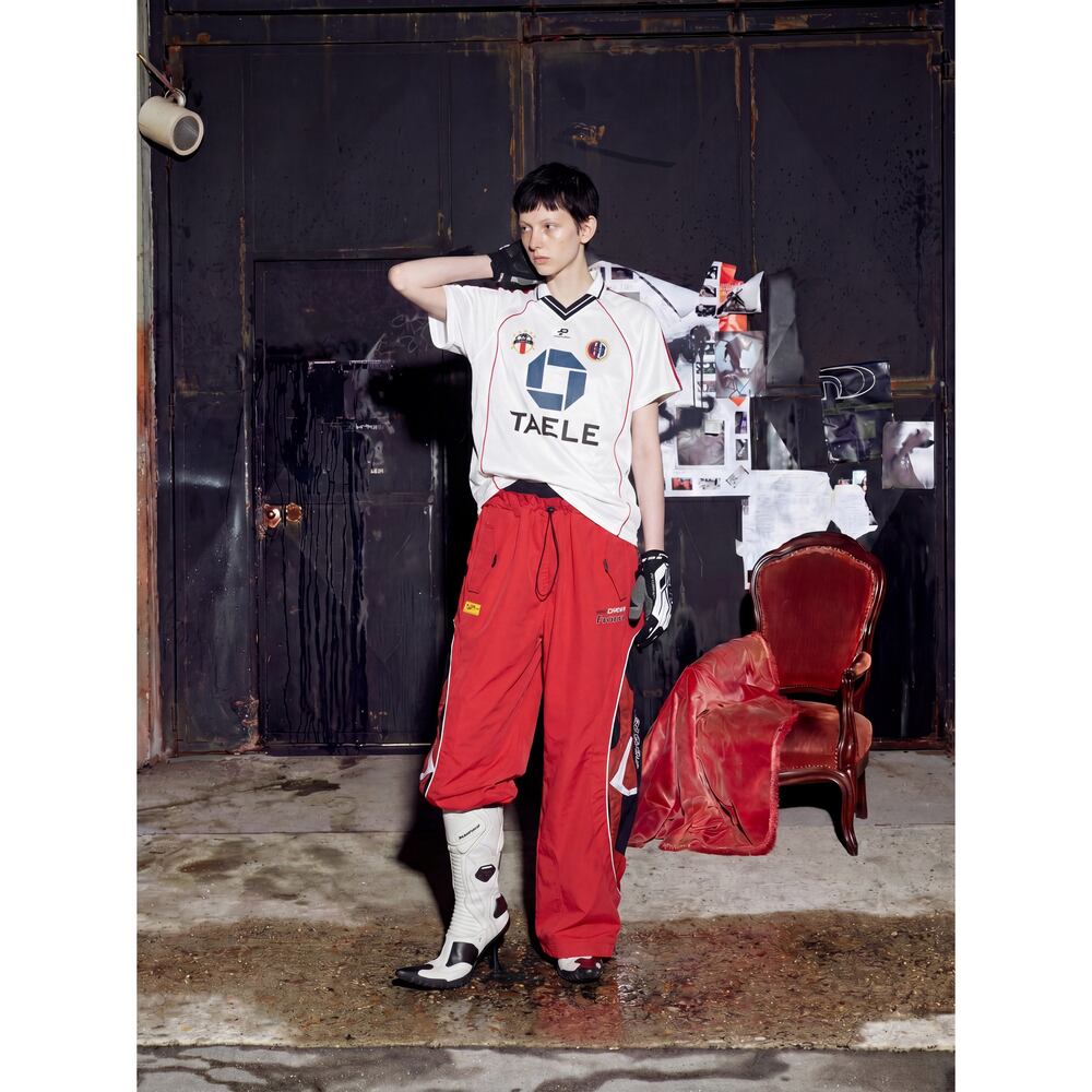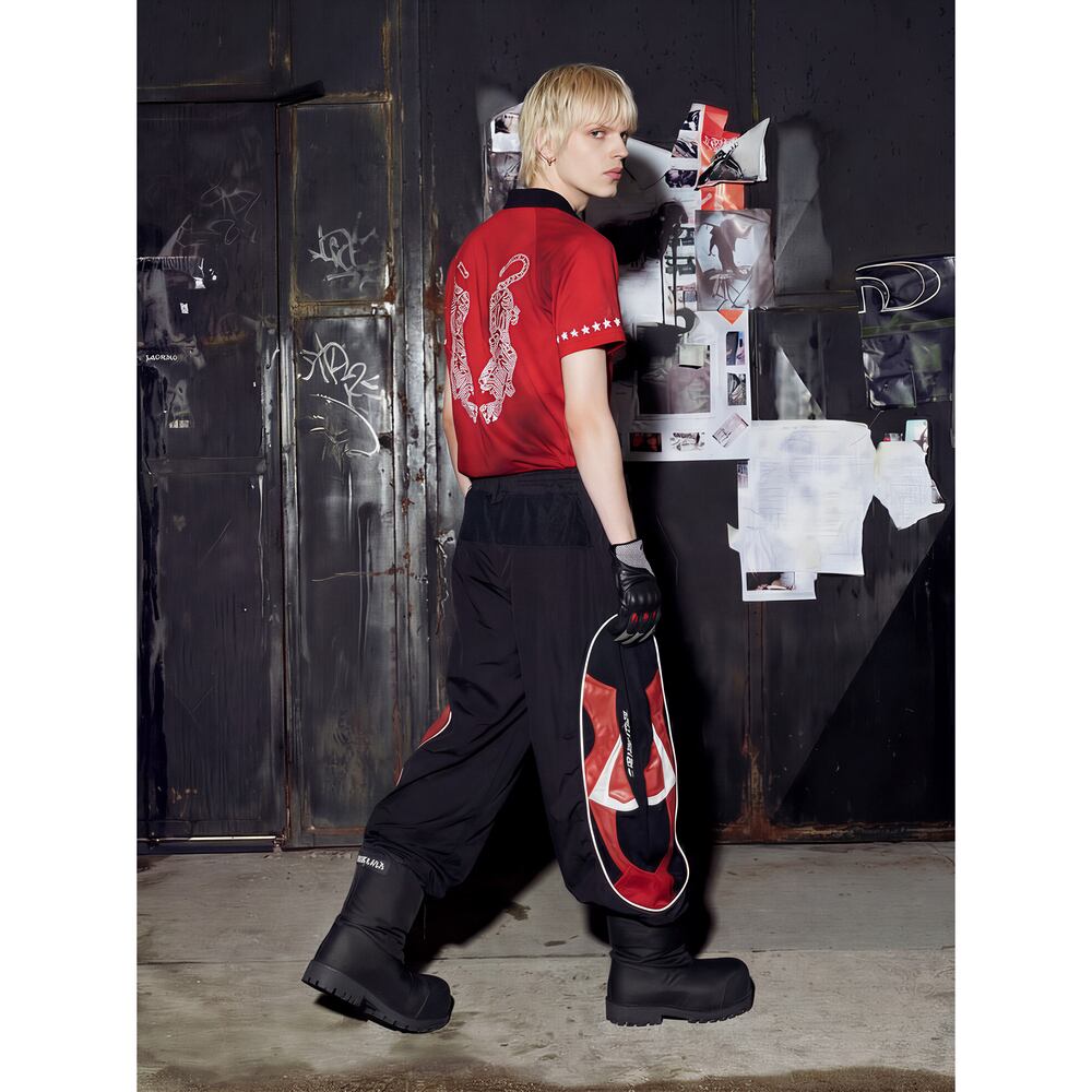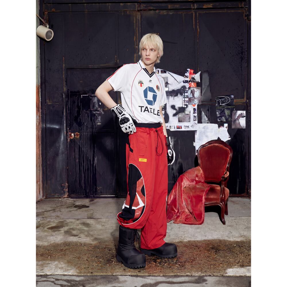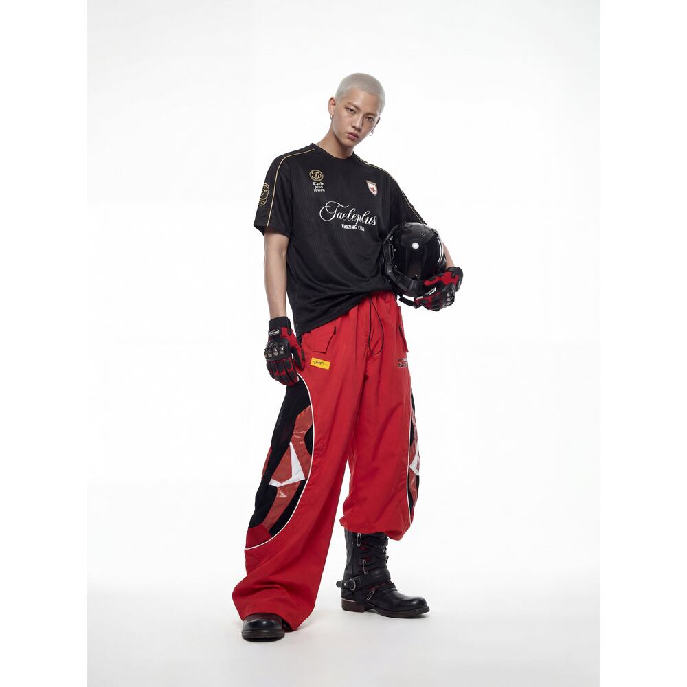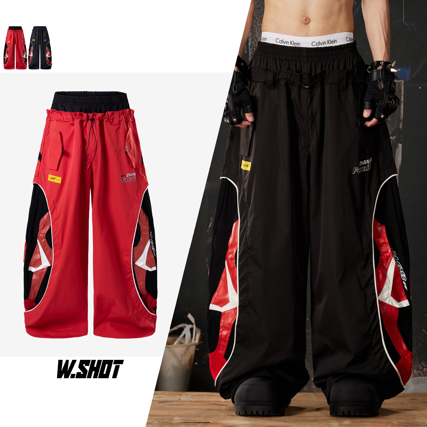 ストリート ダブルウエスト 切替ワイドトラックパンツ P410