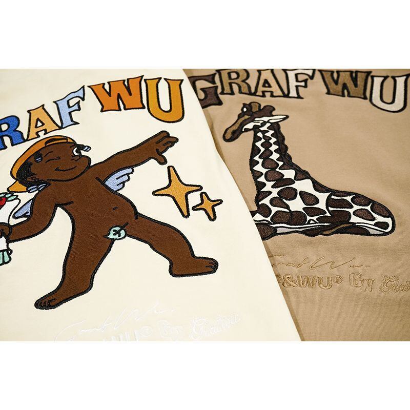 ストリート GRAF キリン 刺繍 ロングTシャツ T309