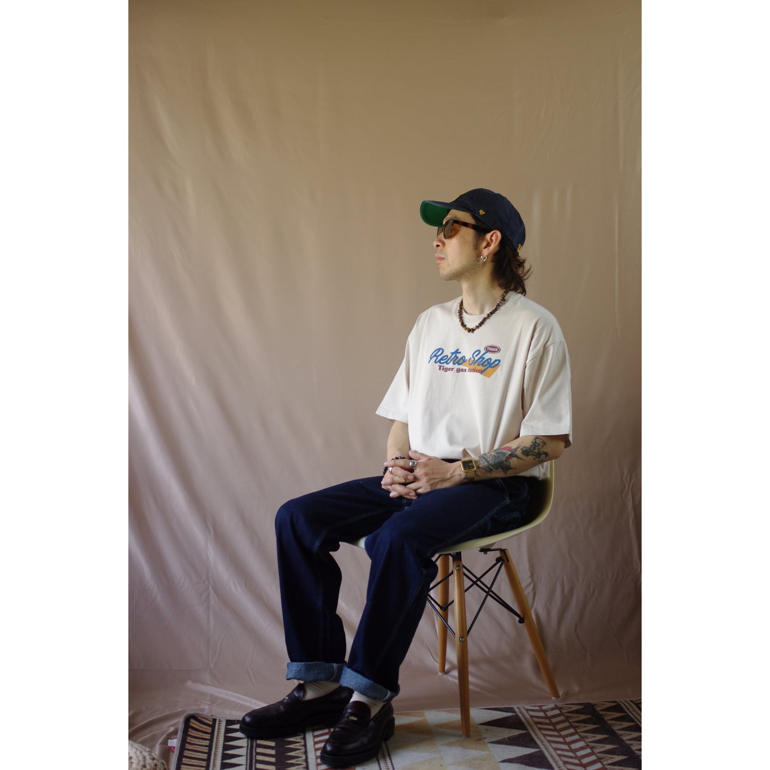 どこか懐かしい雰囲気とモダンなアクセントが融合した一枚は、カジュアルなコーディネートに遊び心をプラスしてくれること間違いなし!シンプルなデニムやスウェットパンツとの相性も抜群です。