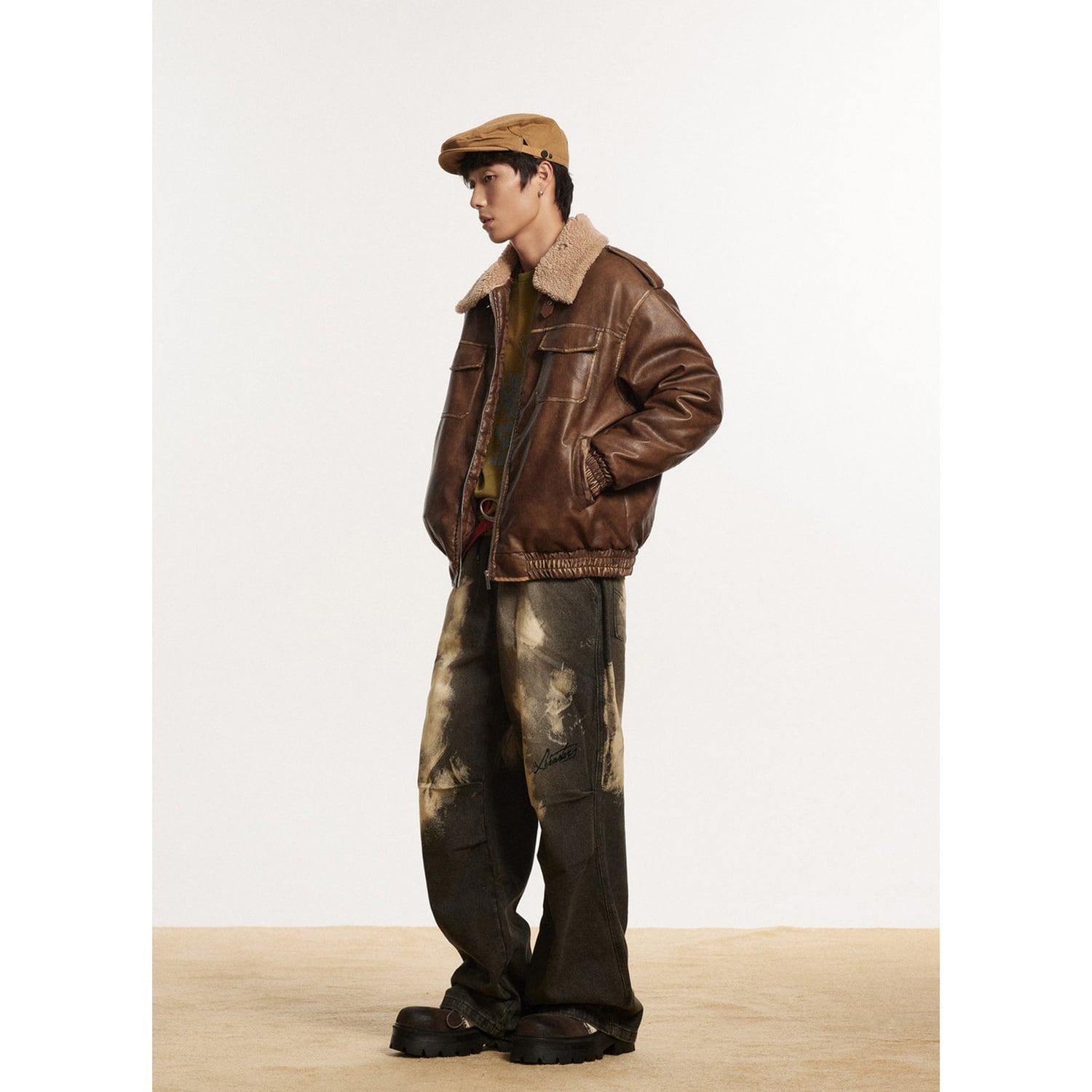 【暖かさUP】VINTAGE ストリート PUレザー 中綿ジャケット T1288