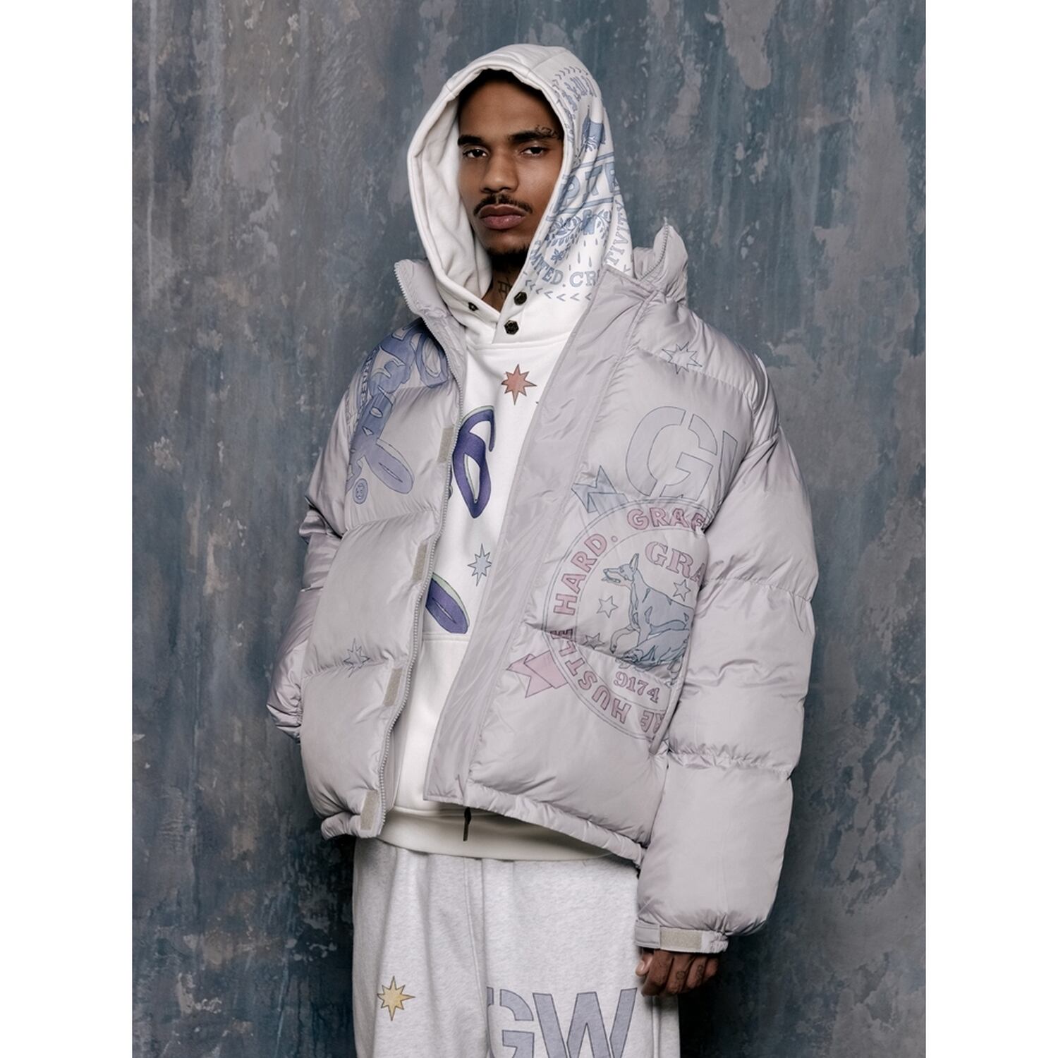 ポリエステル製の人工ダウンで、しっかりとしたボリューム感を実現しています。詰め物がしっかりと充填され、ダウンジャケットのような暖かさを提供します。ボリューム感があり、男女問わず着用しやすいデザインです。