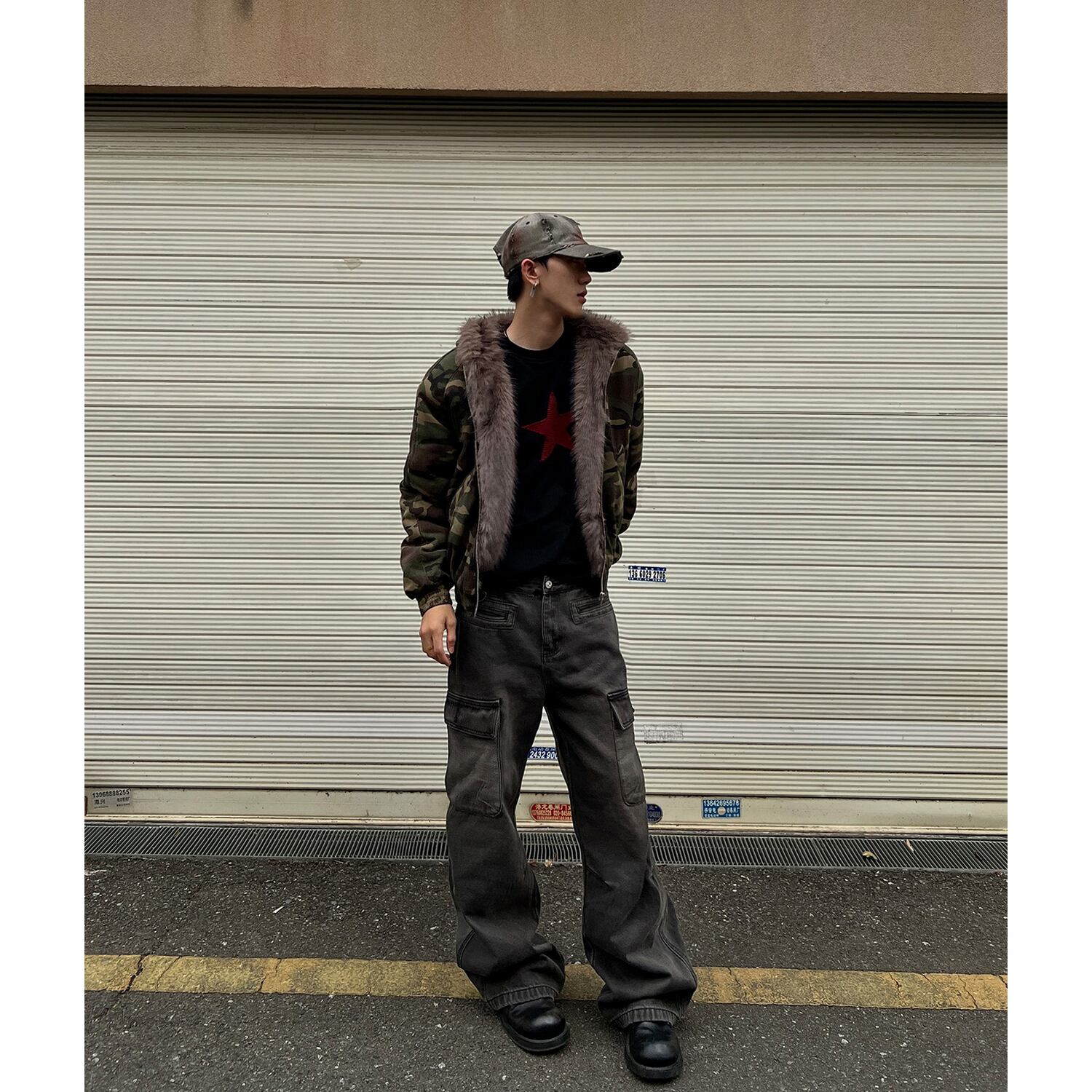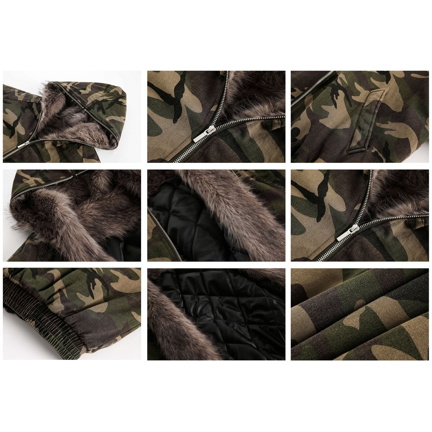 【暖かさUP】迷彩襟ファー中綿ジャケット T1413